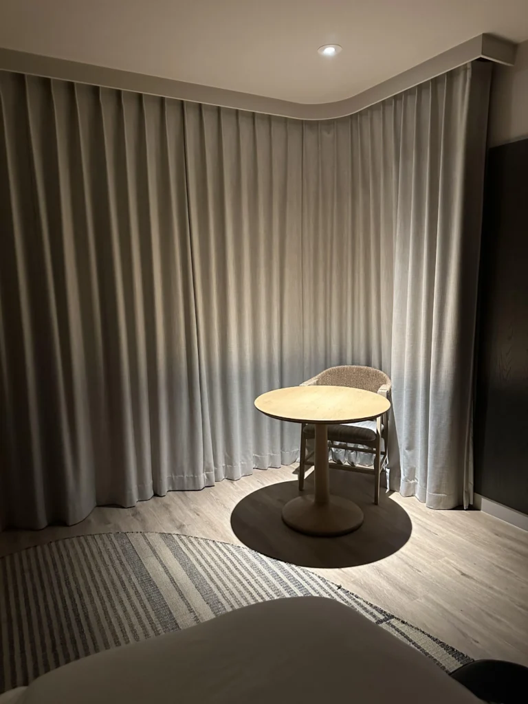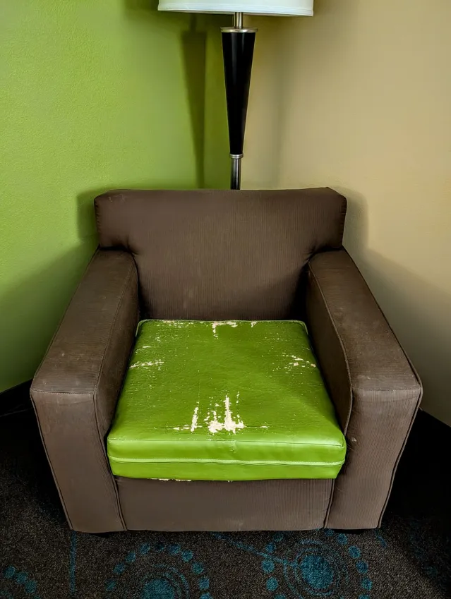 This one thinks it’s important because it has a matching ottoman, but look at it. Stuffed in the corner like the hotel didn’t want to throw it out but also didn’t want guests to actually use it. The ottoman is basically a chaperone. This chair watches other furniture get sat on just like Tyler.